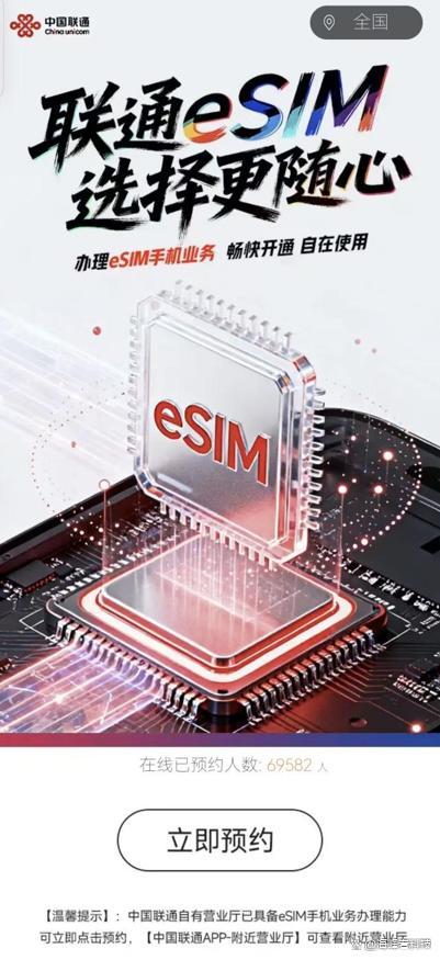 中国联通迅速行动,上线了eSIM业务全国预约通道,截至发稿时已有69582人预约。联通以“联通eSIM选择更随心”为口号,开放了APP与线下营业厅双预约渠道,并启动了“eSIM 尝鲜季”补贴活动。购买eSIM版“云智 AI Pad”的用户可享受立减优惠及流量包,合约用户最高可获50%补贴。此外,联通成为首款国行eSIM机型iPhone Air的独家适配运营商,并建成了国内首个自主知识产权eSIM管理平台,累计适配75款终端。