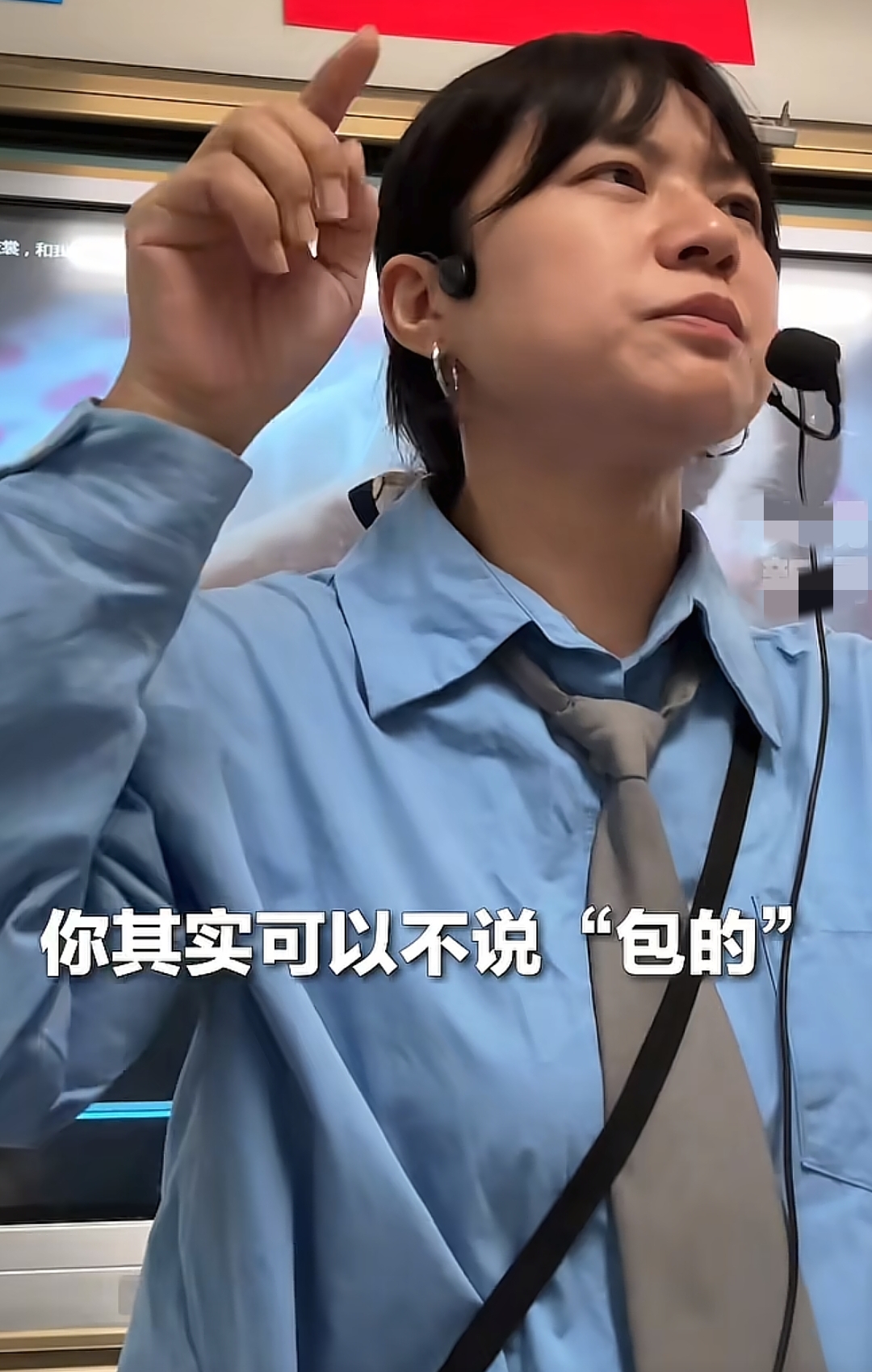 视频中的这位老师,身穿蓝色上衣,脖子上系了条灰色领带,穿着得体,根本没有一点老师的架子,没有浓妆艳抹,甚至都没有佩戴过分的装饰品,看着非常和蔼可亲。