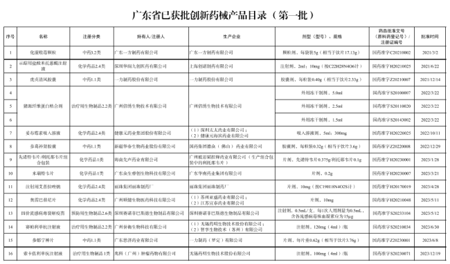 附:《广东省已获批创新药械产品目录(第一批)》