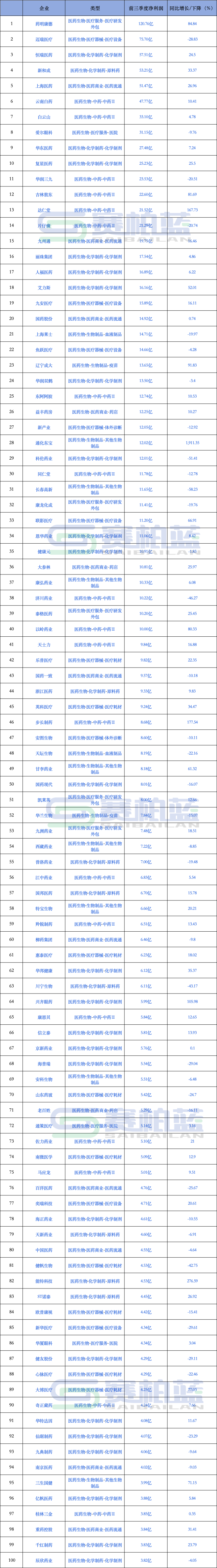 细分板块各大药企排名明细 有企业前三季度净利润同比增长超150%