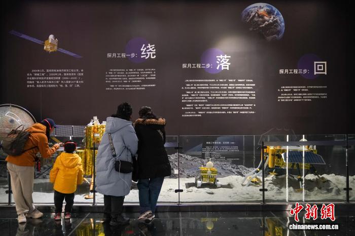 11月5日,黑龙江哈尔滨,观众在哈工大航天馆内参观探月工程规划展区。中新社记者 赵宇航 摄