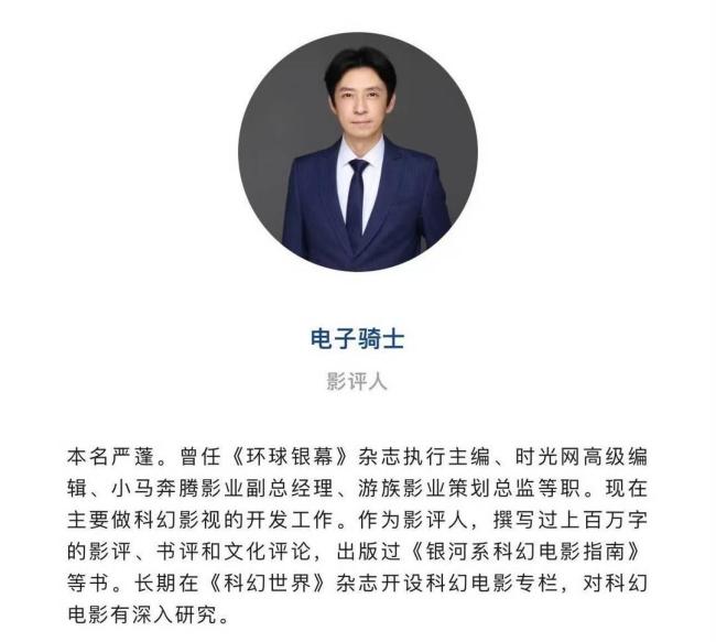 知名影评人“电子骑士”严蓬去世 影迷科幻迷扼腕叹息