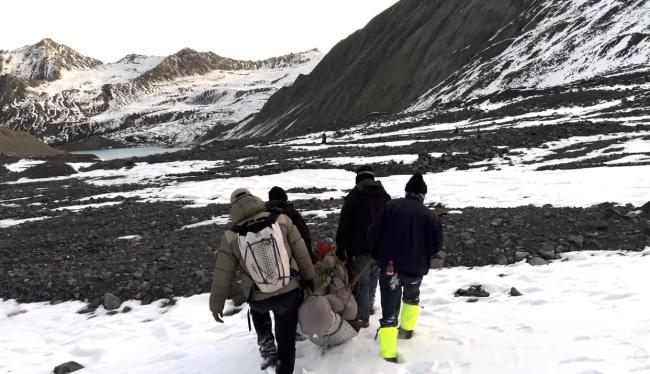 事后,朱先生在朋友圈记录了滑坠后的心路历程:“数次想要放弃结束自己生命,想到自己搭档还在冰裂缝等待自己联系救援,求生意志一次一次在唤醒我。”在第三次埋雪坑时,他发现了被风雪掩埋的帐篷,顿时看到了希望。摔落点距离他们的帐篷只有约一公里路程,但就是这一公里的路,他爬了10个小时,途中数次绝望。最终,他拼接好摔成两半的对讲机,联系上了救援队,强调一定要把搭档带出来。此时对讲机中传来搭档的一声“我爬出冰裂缝了”,朱先生热泪盈眶。