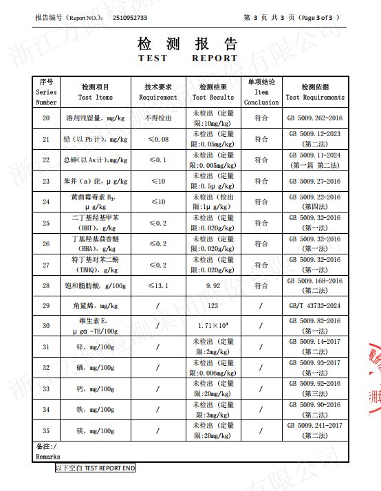 山茶润山茶护肤油通过严格人体试用试验,未出现皮肤不良反应,安全表现令人放心。同时,产品拥有原料有机认证、HACCP出口备案等多重资质,并与太平洋保险构建质量保障体系,让消费者使用更安心。此外,山茶润山茶护肤油不仅依托公司参与编制的《化妆品用原料油茶籽油》团体标准,更通过从原料筛选、采摘处理,到生产质检的全链路管理,确保每一瓶产品都经得起考验。