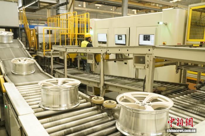 图为技术人员正在检测车轮。王继军 摄