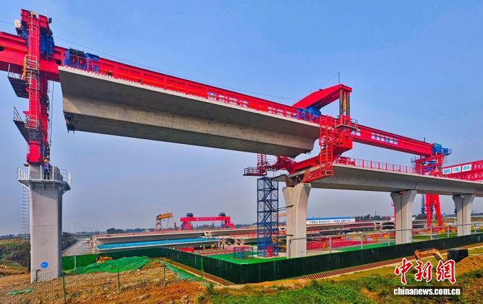中新网成都11月26日电 (记者 刘忠俊)记者26日从成都轨道集团获悉,市域(郊)铁路成(都)至德(阳)线(以下简称“成德线”)预制梁架设作业已拉开序幕,标志着该条线高架段建设进入快速推进阶段。