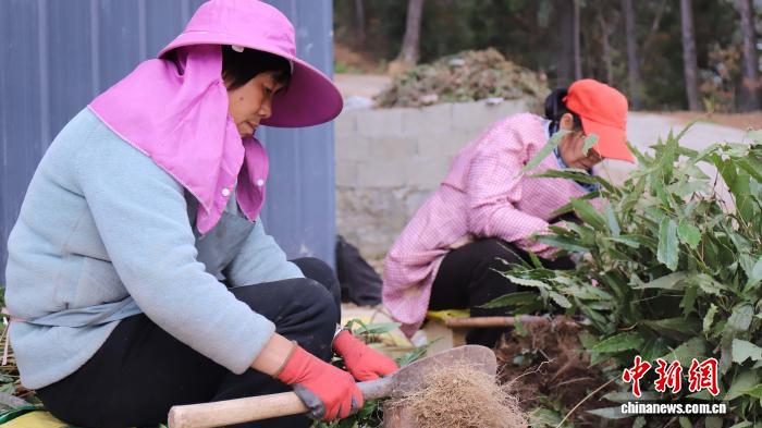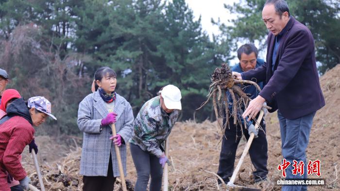 2025年12月,陕西省汉中市镇巴县种植户正在采收药材。郝洋 摄