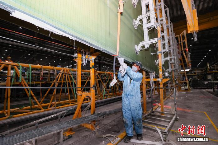 12月11日,工人在打磨风电叶片半成品。记者 瞿宏伦 摄