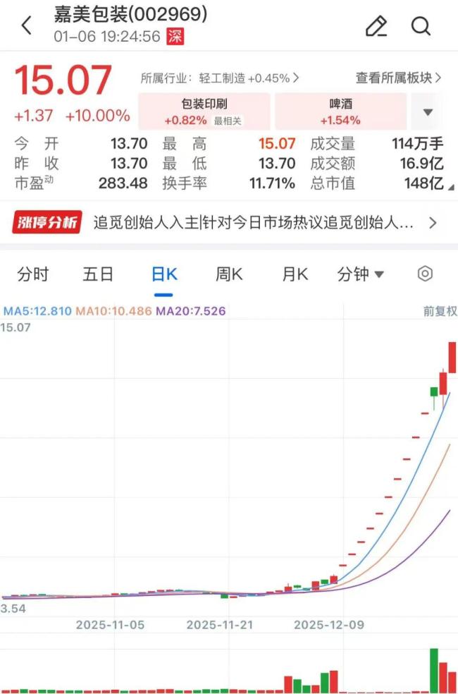 1月6日晚间,国晟科技和嘉美包装相继发布公告,宣布将停牌核查。过去58个交易日中国晟科技股价累计涨幅接近500%。