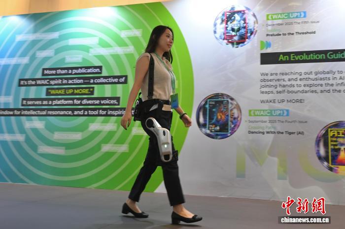 图为一名女士穿戴“外骨骼机器人”步行。中新网记者 李志华 摄