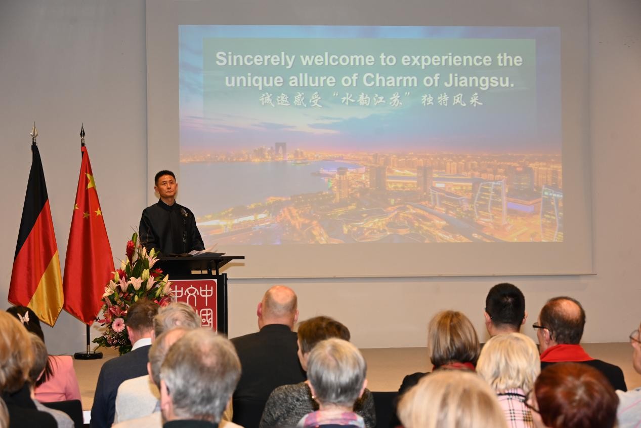 柏林中国文化中心副主任何文波在致辞中表示,江苏既是中国经济发展最具活力的省份之一,也是人文底蕴深厚的文化大省。此次文旅推介活动向德国公众呈现一个立体、生动、可感可亲的江苏。
