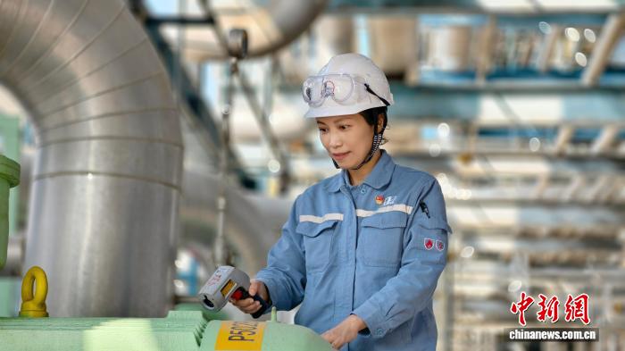 阮阳越在装置现场核对仪表数据。张鹏 摄