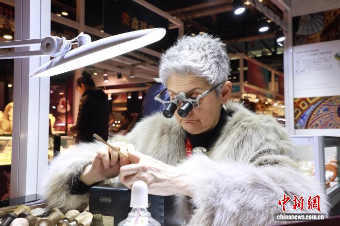 2026北京国际珠宝展19日至22日举行。图为意大利参展商在展会现场展示传统手工艺。中宝协 供图