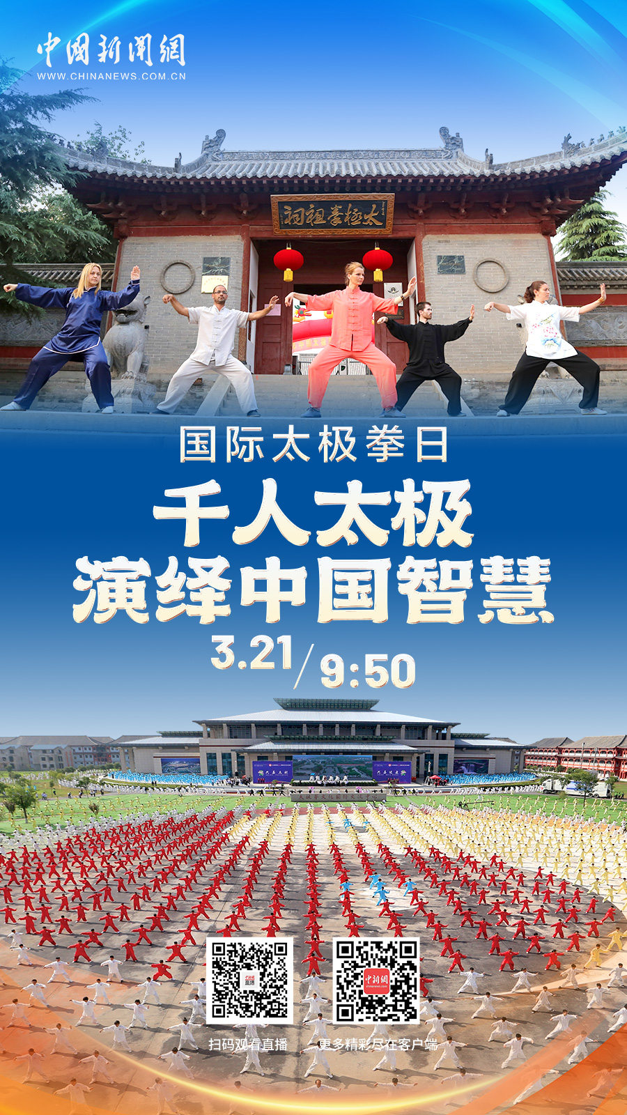 直播海报:国际太极拳日 千人太极演绎中国智慧
