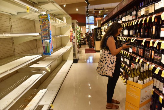 2018年8月22日,在美国夏威夷檀香山,一名顾客在超市购物,为飓风来袭做准备。新华社记者孙瑞博摄
