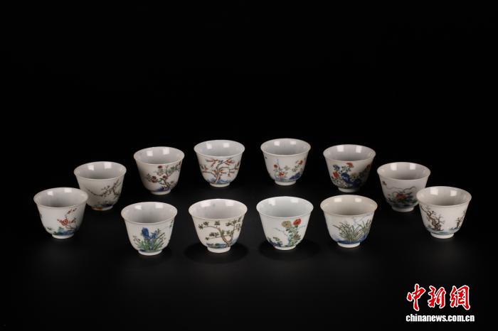 清康熙青花五彩十二月花卉杯。广东省博物馆 供图