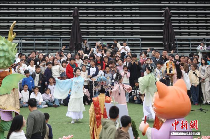4月2日,江苏南京,孩子们在大报恩寺遗址博物馆春日文化盛会中观看演员表演。中新社记者 泱波 摄