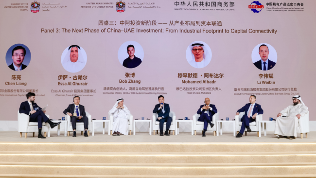 图为:在中国阿联酋企业推介会圆桌论坛上,张博(左四)与中阿双方代表共同探讨合作新机遇