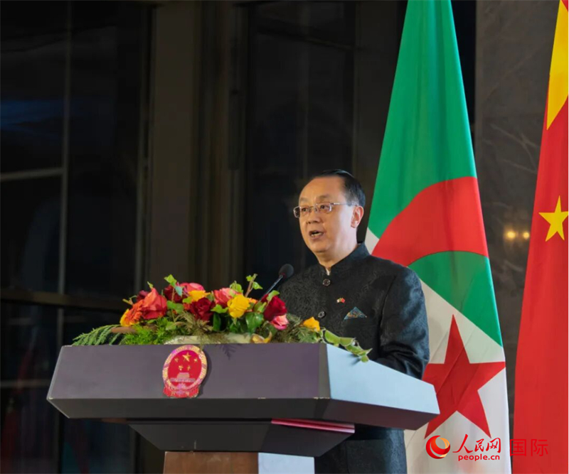 人民网阿尔及尔9月24日电(记者郝瑞敏)当地时间9月23日晚,中国驻阿尔及利亚大使馆在阿文化宫举办招待会,隆重庆祝中华人民共和国成立76周年。阿尔及利亚总统特本赠送花篮,人民军参谋长谢赫里亚致贺。阿政