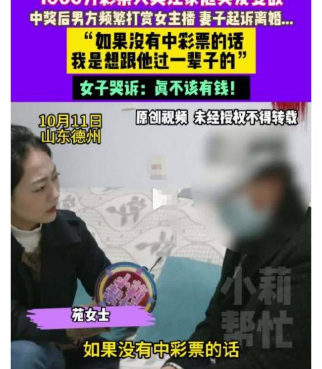 有人中了彩票后会选择与原配离婚。近日,一名女子称自己的丈夫在中了1000万后频繁打赏女主播,已经变心。妻子决定起诉离婚,并表示如果没有中彩票,她原本打算和丈夫过一辈子。女子哭诉道:“真不该有钱。”但事实上,这不仅仅是钱的问题,更是人的问题