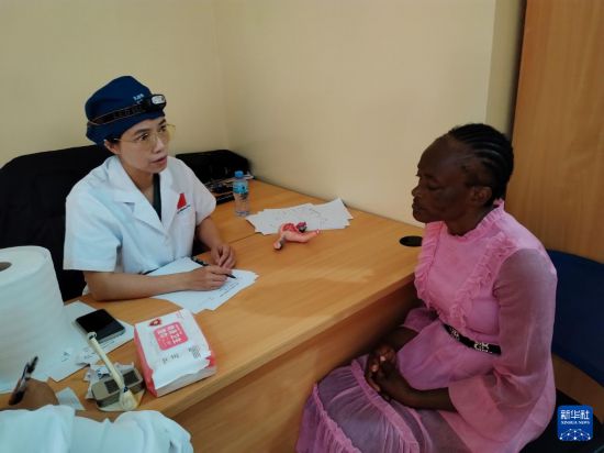 11月25日,在赤道几内亚首都马拉博一所学校,中国医疗队妇产科医生为患者诊疗。 第34批援赤道几内亚中国医疗队25日在赤几首都马拉博一所学校开展义诊活动,为200多名师生进行诊疗并发放药品。