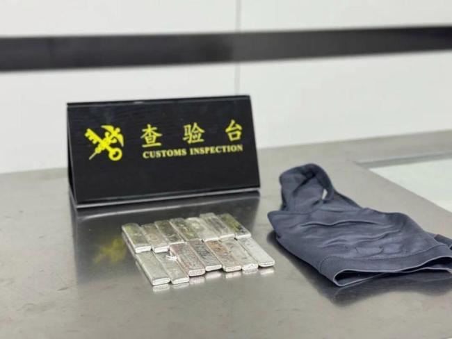 近日,罗湖海关查获一名进境旅客藏匿的足银14块,总重达1965.69克。当天,海关关员在对进境旅客进行监管时,注意到一名女性旅客神色紧张、步伐僵硬,且未向海关申报。随后,关员对该旅客进行了拦截检查