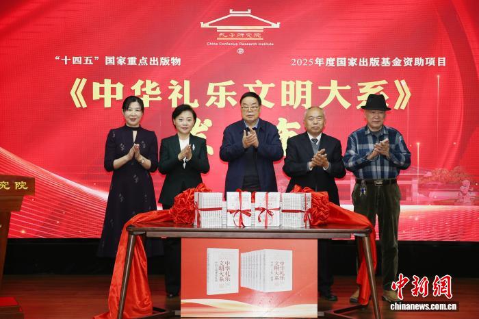 中新网山东曲阜11月28日电 (李明芮)“孔子研究院加强学术建设推进高质量发展会议”11月28日在山东曲阜召开。会上,《中华礼乐文明大系》丛书正式发布。该套通俗学术理论丛书共10部专著,涵盖《中国“三礼”述要》《中