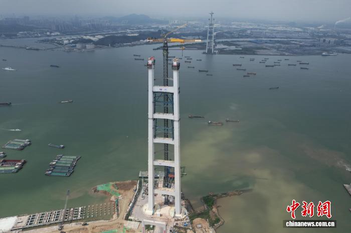 中新网东莞3月26日电 (记者 蔡敏婕)粤港澳大湾区核心枢纽工程狮子洋通道关键控制性工程——狮子洋大桥实现东、西主塔26日11时许封顶,转入上部结构施工阶段。