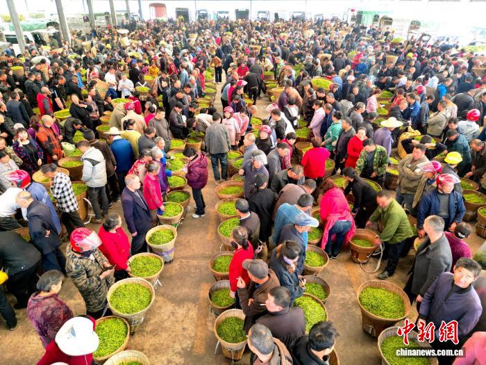 图为繁忙的双河鲜叶交易市场。(无人机照片)中新社记者 张浪 摄 图为繁忙的双河鲜叶交易市场。(无人机照片)中新社记者 张浪 摄
