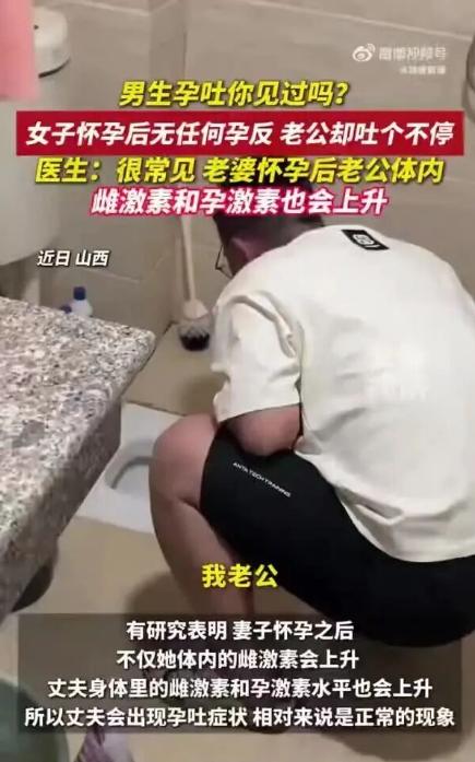 近日,山西的杨女士表示,自己怀孕后没有任何孕反,而她的丈夫却出现了频繁的孕吐症状。据杨女士介绍,在她怀孕两个月左右时,丈夫开始出现呕吐和恶心的情况,甚至比她更早察觉到怀孕