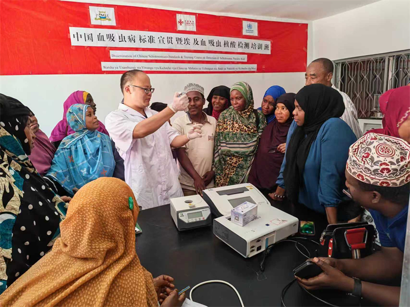 人民网内罗毕10月14日电(记者黄炜鑫)达累斯萨拉姆消息:今年10月14日是第56个世界标准日。为进一步提升当地公共卫生人员专业技术能力、推动当地血吸虫病防控工作规范化、科学化开展,中国援助桑给巴尔血