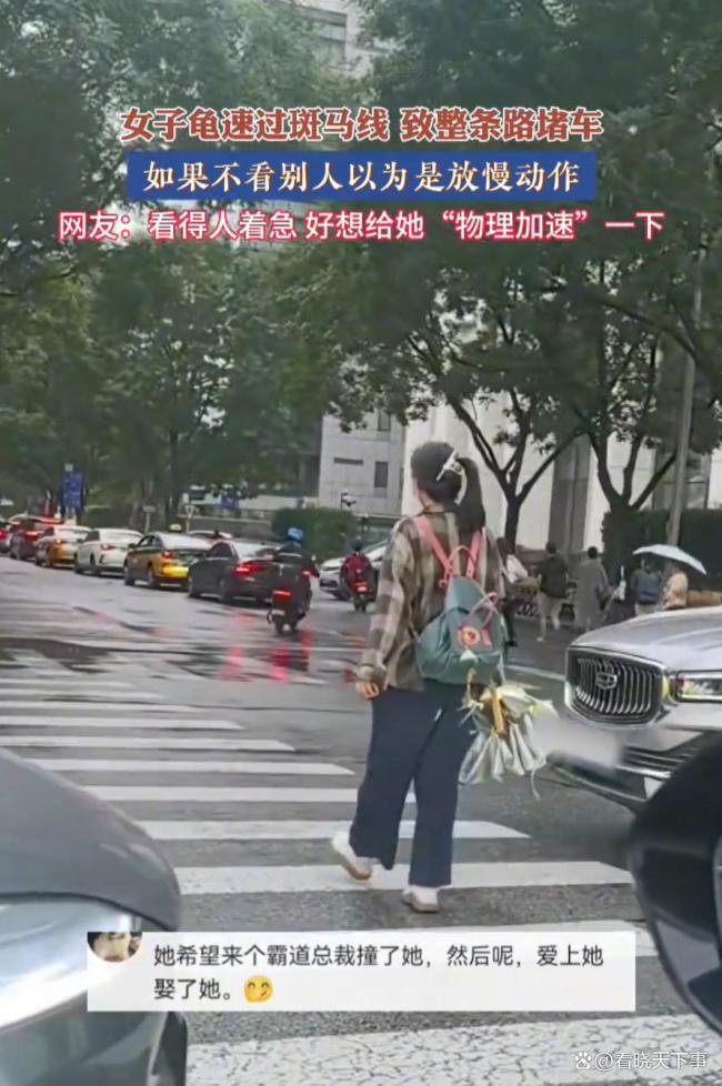 “新型碰瓷方式?”北京,一名女子走斑马线的行为引起了不少人的注意,她走路特别慢,慢到整条路的车都被堵住了,要不是看旁边路人的走路速度,还以为是有人把视频进行了慢放。网友:她是希望有霸总撞到她吗?从视频里看,她戴着口罩,背着书包,手里还拿着一...