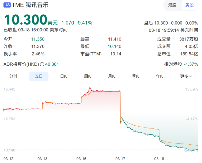 腾讯控股在3月19日披露了2025年的业绩,早盘股价一度下跌超过6%,中午收盘时跌幅为5.9%,报收518港元,成交额达191亿港元,总市值跌破5万亿港元