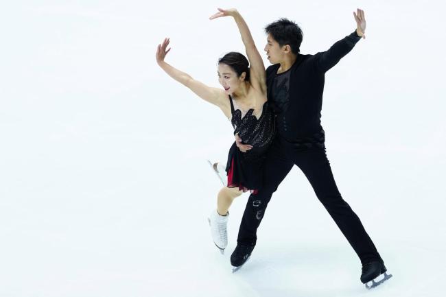 2025年世界花样滑冰大奖赛日本站双人滑短节目比赛在日本大阪举行。中国组合隋文静和韩聪在比赛中表现出色,以74.63分的成绩位列第一名