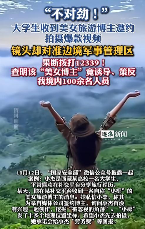 美女博主设局,大学生一眼识破“合作陷阱”西藏某高校大学生小杰最近成为焦点——他用警惕和果断,揭穿了境外间谍情报机关的“合作陷阱”。事情始于社交平台:小杰爱分享旅行攻略,被自称“小椰”的美女博主私信