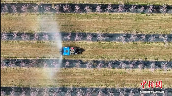 中新网运城4月3日电 (高雨晴 董巨星 李瑶艳)暮春时节,山西省运城市万荣县汉薛镇南景村的4000亩桃花竞相绽放。春风拂过黄土塬,成片的桃林披上粉衣,如霞似锦,拉开了当地桃农一年中最为忙碌的春管序幕。