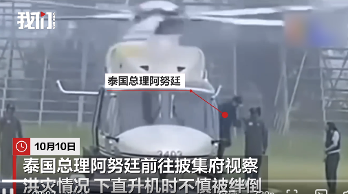 10月10日,泰国总理阿努廷前往披集府视察洪灾情况,下直升机时不慎被绊倒。视频画面显示,他踉踉跄跄,随后单膝跪地。身边多人搀扶他,他重新站起。事发后他表示自己并未受伤,并继续对受灾地区进行视察。10月7日,泰国防灾减灾厅说19个府发生洪灾,...